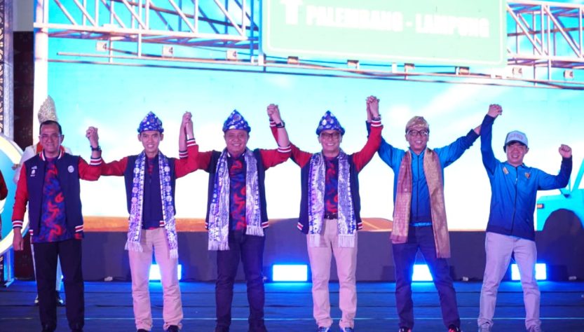 PALEMBANG — Provinsi Lampung resmi ditunjuk menjadi tuan rumah Pekan Olahraga Nasional (Pornas) Korpri XVIII Tahun 2027. Penetapan ini ditandai dengan penyerahan pataka atau bendera estafet dari Gubernur Sumatera Selatan, Herman Deru, kepada Gubernur Lampung Rahmat Mirzani Djausal dalam upacara penutupan Pornas Korpri XVII di Palembang, Sabtu (11/10/2025).