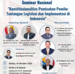BANDAR LAMPUNG – Fakultas Hukum Universitas Lampung akan menggelar Seminar Nasional bertajuk “Konstitusionalitas Pemisahan Pemilu: Tantangan Legislasi dan Implementasi di …