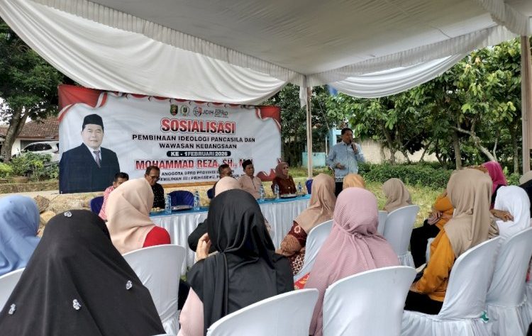 Bandar Lampung – Anggota DPRD Provinsi Lampung, Mohammad Reza Berawi, menggelar Sosialisasi Pembinaan Ideologi Pancasila dan Wawasan Kebangsaan bersama warga yang tergabung dalam Kelompok Wanita Tani (KWT) Desa Sukaraja, Kecamatan Gedung Tataan, Kabupaten Pesawaran, Sabtu (7/2/2026).
