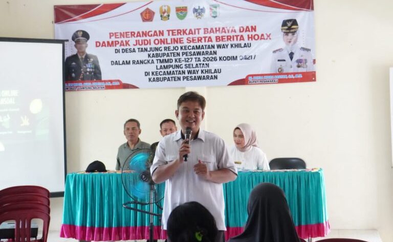 Kegiatan berupa sosialisasi bahaya judi online dan penyebaran hoaks berlangsung di Balai Desa Tanjung Rejo, Kecamatan Way Khilau, Rabu (25/2/2026).